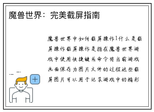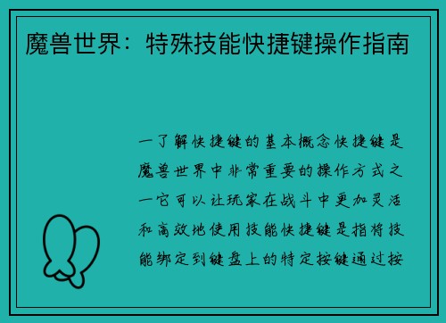 魔兽如何编队操作视频教程 引言: 魔兽世界是一款广受欢迎的大型多人在线角色扮演游戏,其中编队操作是玩家们在团队战斗中必备的技能之一。本文将为大家介绍魔兽编队操作的基本知识和技巧,并提供一些实用的视频教程,帮助玩家们更好地掌握这一技能。 一、编队操作的重要性 编队操作是魔兽世界团队战斗中至关重要的一环。通过合理的编队,玩家们可以有效地分工合作,提高团队的整体战斗力。一个良好的编队操作不仅可以保证团队...
