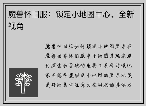 魔兽世界怀旧服的推出,让许多玩家重温了当年的经典副本。刷副本装备是每个玩家在游戏中的重要目标之一。本文将从多个方面详细阐述如何有效地刷副本装备,帮助玩家在游戏中取得更好的成就。 选择适合的副本 玩家需要根据自身的装备水平和职业特点选择适合的副本。不同的副本有不同的装备掉落,有些副本适合刷取武器,有些副本适合刷取防具。玩家可以通过查看游戏指南或者向其他玩家咨询,了解每个副本的装备掉落情况,选择最适合...